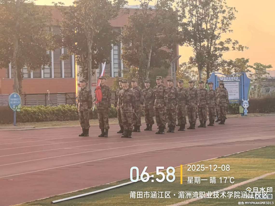 为深化法治理念传播,增强学生宪法素养,12 月 8 日晨曦微露之际,国防教育学院在学校操场隆重举行升旗仪式。朝阳初升,霞光洒满校园,全体师生身着整齐着装,列队肃立。伴随着雄壮激昂的国歌声,五星红旗冉冉升起,全体师生凝神注目,目光追随着鲜红的旗帜,心中满怀着对祖国的崇高敬意与赤诚热爱。