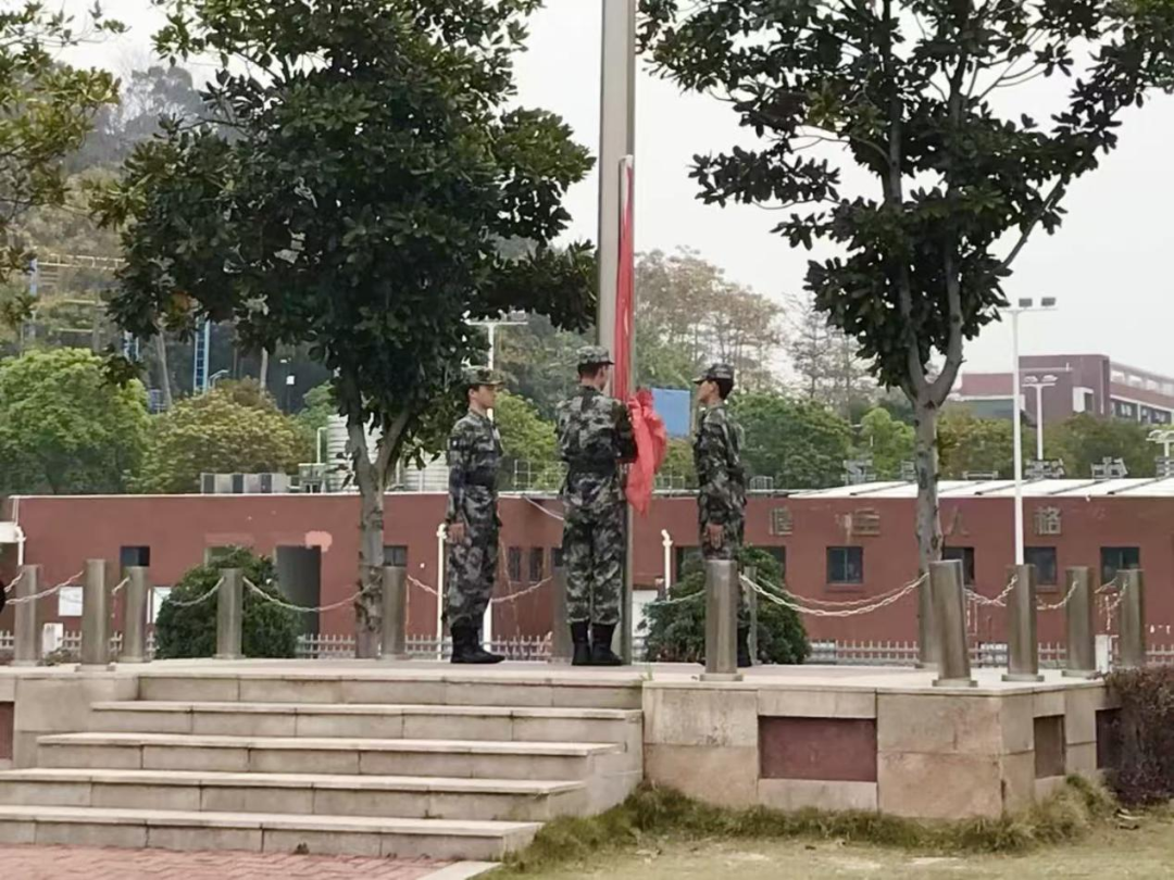 英姿飒爽的国旗护卫队迈着铿锵有力的步伐,护卫鲜艳的五星红旗走向升旗台。伴随着雄壮激昂的《义勇军进行曲》,全体师生庄严肃立,行注目礼,凝视五星红旗在晨曦中冉冉升起、迎风飘扬。这一刻,爱国情怀与时代责任在每个人心中激荡升华。