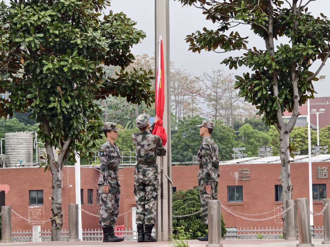 上午7时,升旗仪式正式开始。国旗护卫队队员迈着铿锵有力、整齐划一的步伐,护送五星红旗走向升旗台。伴随着雄壮的《义勇军进行曲》,鲜艳的五星红旗冉冉升起。全体师生庄严肃立,向国旗行注目礼,表达对祖国的崇高敬意与无限忠诚。